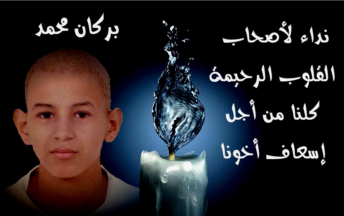 طفل محمد بركان ببلدية بوتليليس ولاية وهران يستنجد بذوي القلوب الرحيمة وأهل البر والإحسان من أجل مساعدة على لإجراء عملية جراحية عاجلة بفرنسا جراء إصابته بمرض خبيث (ورم سرطان) على مستوى القفص الصدري هو في تطور ولا يبعد إلا بـ 1 مم على الكبد وحسب التقرير الطبي فان تكاليف العملية الجراحية تقارب المليار وليكن شعارنا نقدرولها بربي إن شاء الله للاتصال 0697044565. أنشروا هذا الإعلان لجميع أصدقائكم وأجركم على الله تعالى.